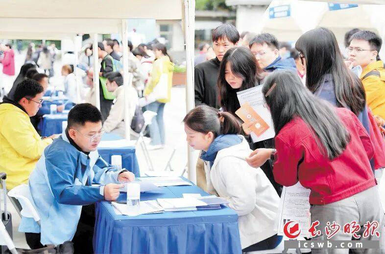 一份份精心准备的简历,一次次真诚深入的交流,来自湖南的“招贤令”在招聘现场得到了高校学子的热烈回应。长沙晚报通讯员 龚子杰 摄