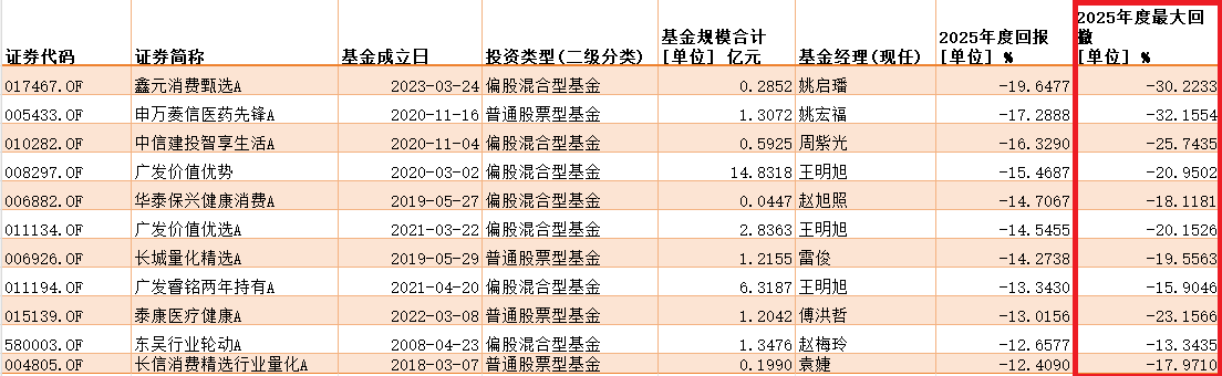 (图片来源:2025年偏股混合型与股票型基金垫底top10,追浪根据Wind整理)
